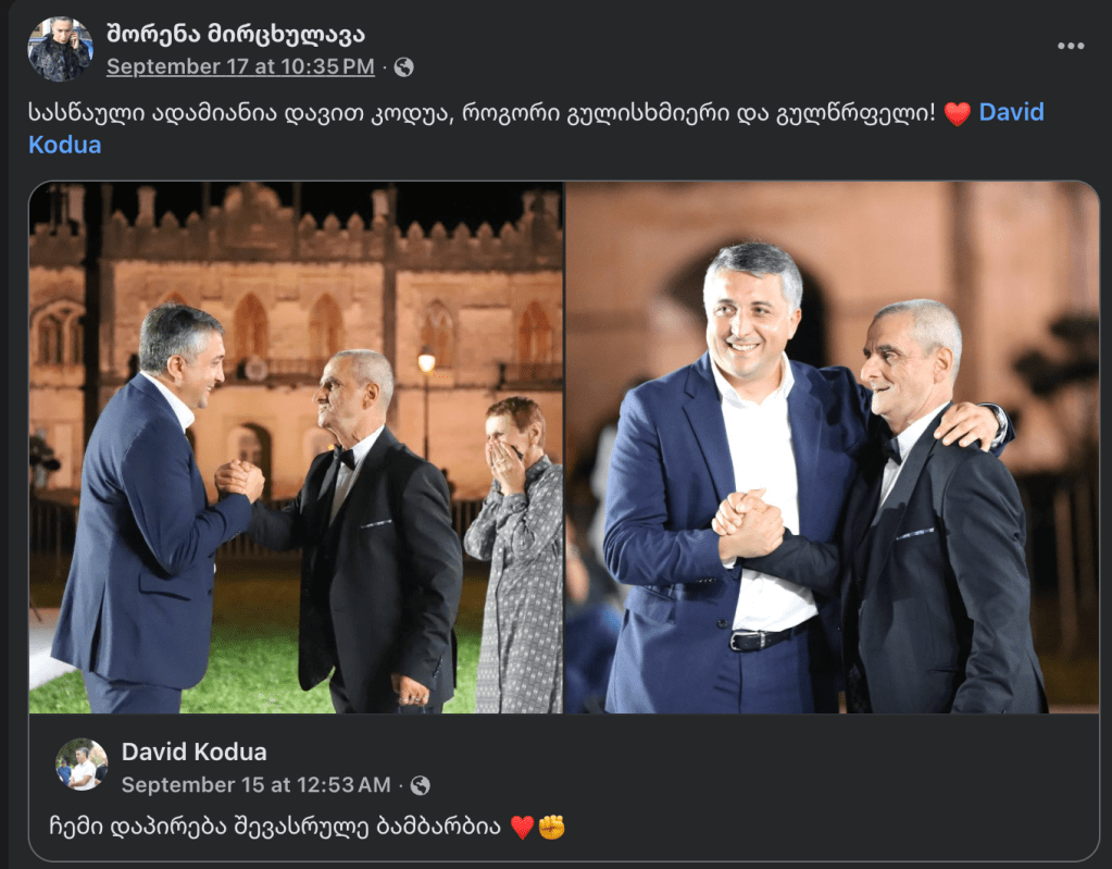 OCCRP-ისთვის გამოგზავნილ პასუხში მირცხულავამ თქვა, რომ მის სოციალურ გვერდებზე გამოხატული მოსაზრებები, კრიტიკული იქნება ის თუ რომელი პირის მიმართ მხარდამჭერი, მხოლოდ მისი პირადი შეხედულებებია და „ვერანაირად ვერ გამოიყენება ორგანიზაციის დისკრედიტაციისთვის“.