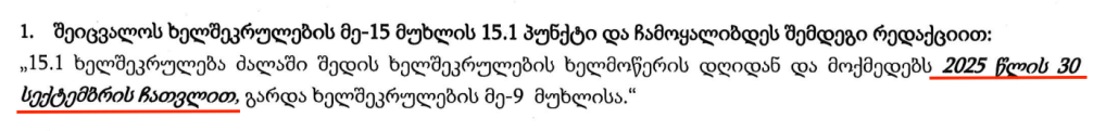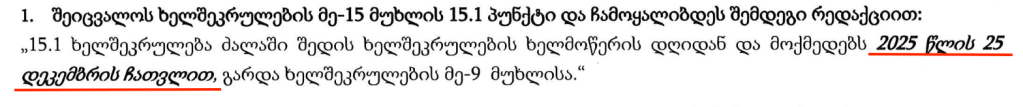 ახალი ცვლილებით პროექტი 2025 წლის 25 დეკემბერს დასრულდება.