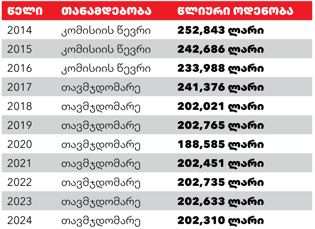 კომუნიკაციების კომისიის თავმჯდომარის ანაზღაურება